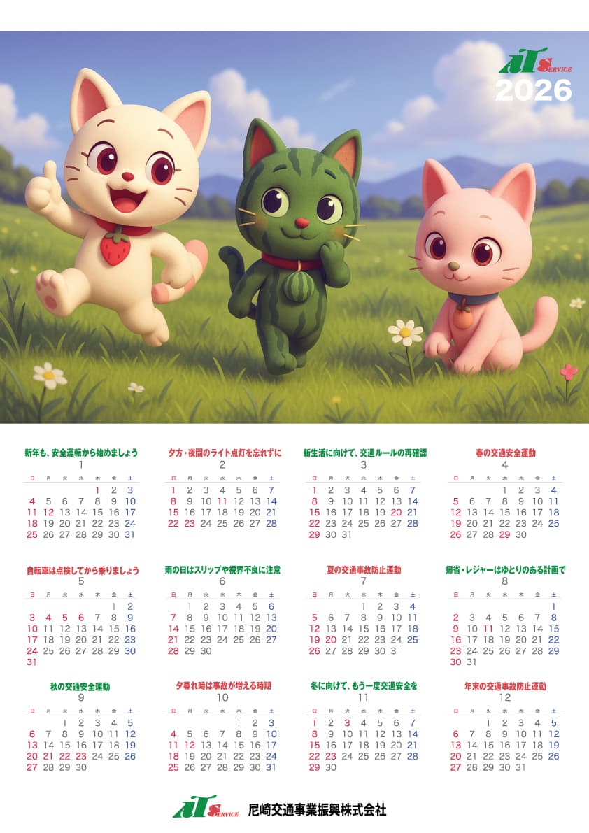 尼崎交通事業振興株式会社ATSカレンダーには、毎月、交通安全に関するスローガンを掲載しています。