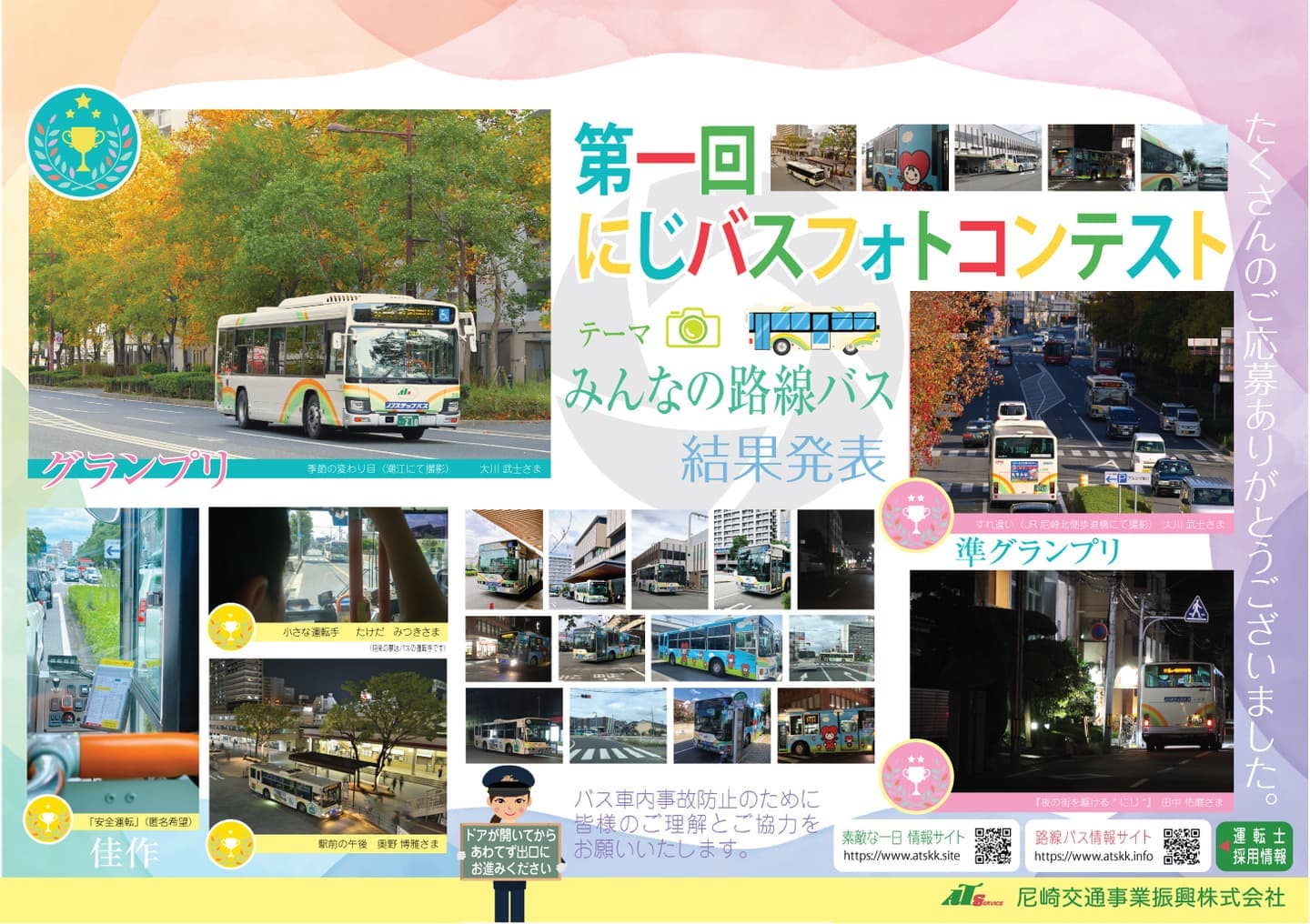 尚、結果は2024年6月9日に京都で開催「第24回スルッとKANSAIバスまつり(スルッとKANSAI主催)」時に、当社バス車両及びブースにおいて発表を行いました。6月中旬より尼崎交通事業振興株式会社(ATS)バス車両内にも掲示いたします。