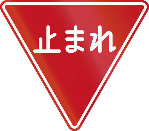 自転車(じてんしゃ)や車(くるま)が必(かなら)ず止(と)まらなければいけない標識(ひょうしき)だよ。