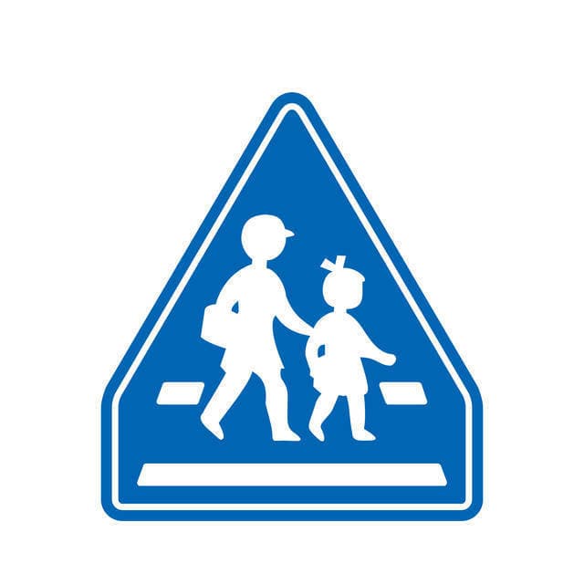 横断歩道(おうだんほどう)がある場所(ばしょ)にはこの標識(ひょうしき)がたっていることが多(おお)いよ。