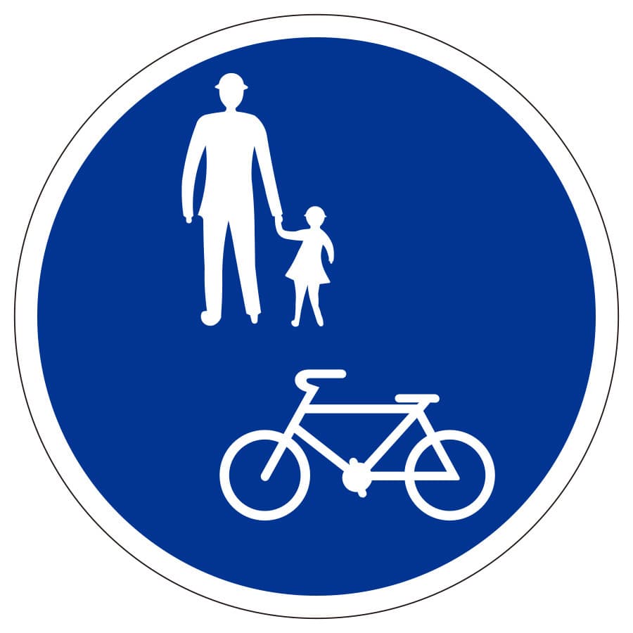 歩行者自転車専用(ほこうしゃじてんしゃせんよう)の独立(どくりつ)した道路(どうろ)に立っている標識(ひょうしき)だよ。